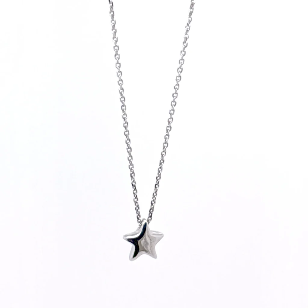 Ασημένιο κολιέ κατασκευασμένο στο χέρι. Με λεπτό σχεδιασμό απεικονίζει ένα αστέρι. Το συγκεκριμένο κόσμημα το συναντάμε σε τρεις παραλλαγές, είτε με επιχρύσωμα είτε με μαύρη οξείδωση είτε στο χρώμα του ασημιού. Ένα κόσμημα που μπορεί να φορεθεί και να συνδυαστεί με μεγάλη ευκολία.