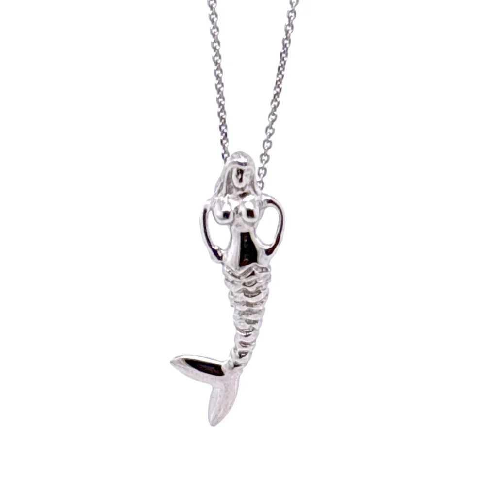 Ασημένιο κολιέ κατασκευασμένο στο χέρι. Με λεπτό σχεδιασμό απεικονίζει μια γοργόνα. Το συγκεκριμένο κόσμημα το συναντάμε σε τρεις παραλλαγές, είτε με επιχρύσωμα είτε με μαύρη οξείδωση είτε στο χρώμα του ασημιού. Ένα ιδιαίτερο κόσμημα που μπορεί να φορεθεί και να συνδυαστεί με μεγάλη ευκολία.
